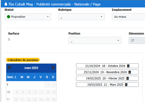 Question : impossibilité de changer la date de parution d'une insertion Print (alors que le chemin de fer, les parutions et les tarifs sont corrects et que le statut n'est pas bloquant)